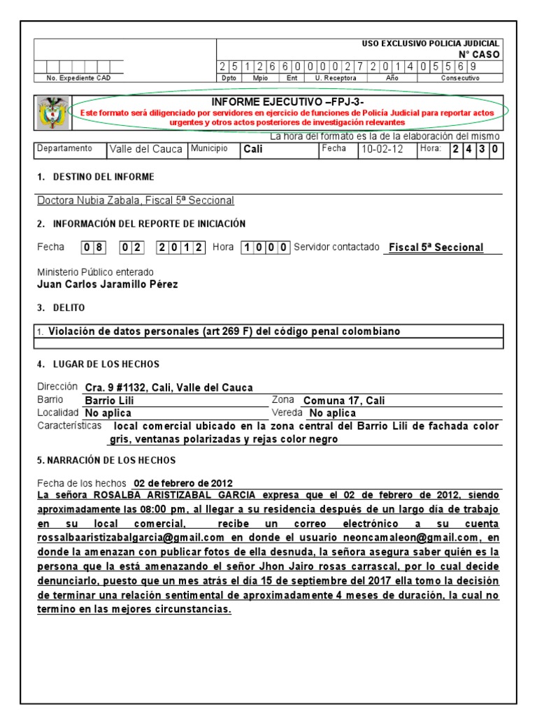 Informe especial de policia ejemplo.